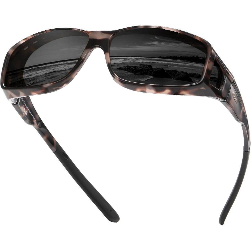 imageDUCO Fit Over Sunglasses for Men and Women Polarized UV400 Protection Wrap Around Driving Oversized Shades DC8968Gray Tortoise Frame Brown Lens