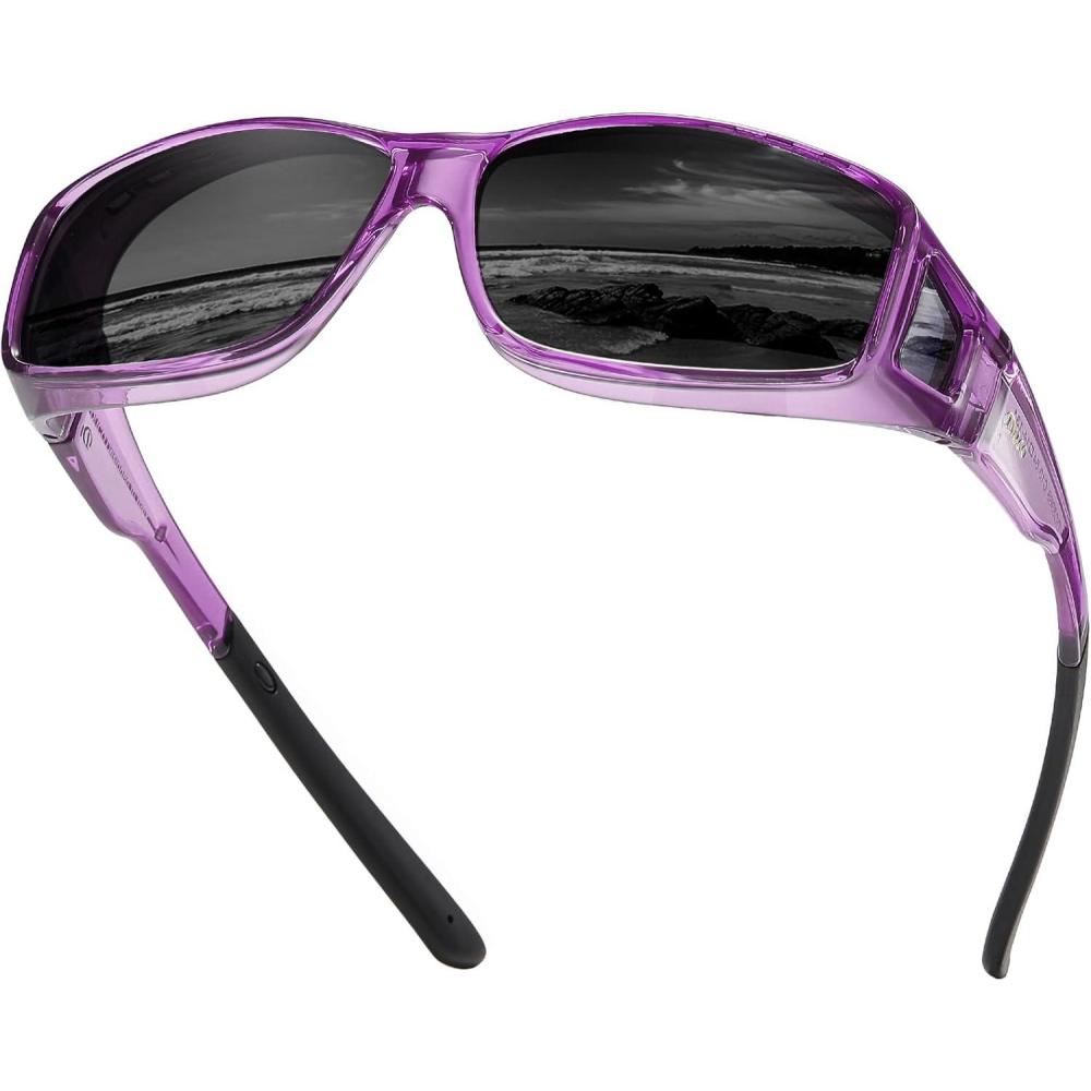 DUCO Fit Over Sunglasses for Men and Women Polarized UV400 Protection Wrap Around Driving Oversized Shades DC8968(Transparent Purple Frame Gray Lens)