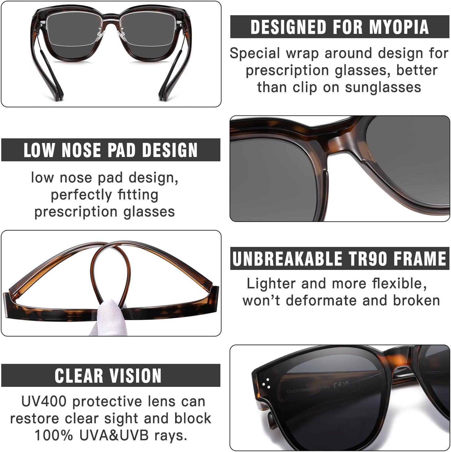 imageDUCO Fit Over Sunglasses for Men Women Wear Over Glasses Retro Wrap Around Polarized Sun Glasses UV400 Protection DC8981Brown Tortoise Frame Grey Lens