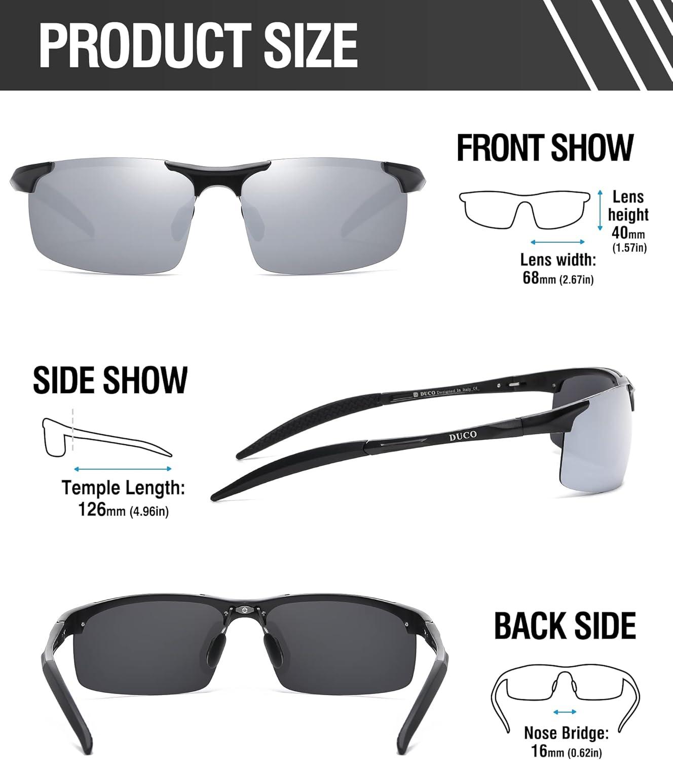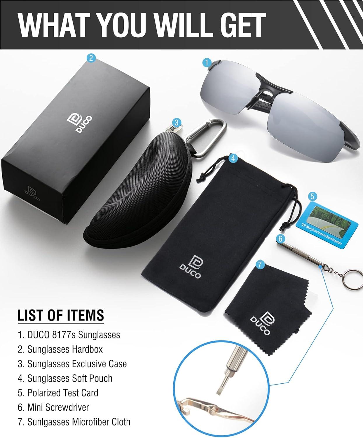 imageDUCO Mens Sports Polarized Sunglasses UV Protection Sunglasses for Men 8177sBlack Frame Revo Silver Lens