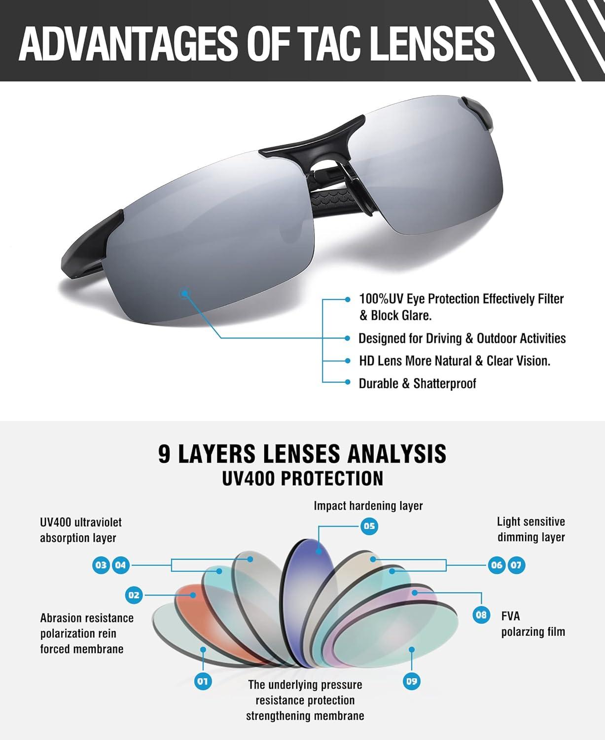 DUCO Mens Sports Polarized Sunglasses UV Protection Sunglasses for Men 8177s(Black Frame Revo Silver Lens)