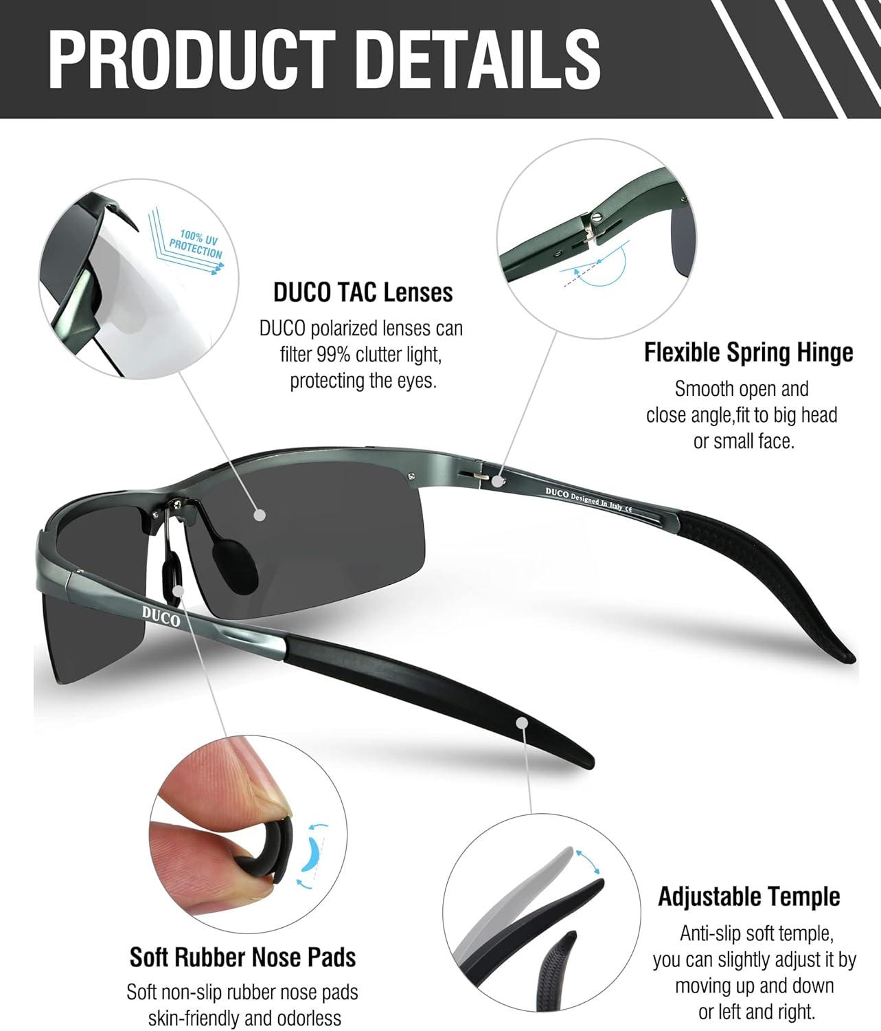 imageDUCO Mens Sports Polarized Sunglasses UV Protection Sunglasses for Men 8177sGunmetal Frame Revo Mirror Lens