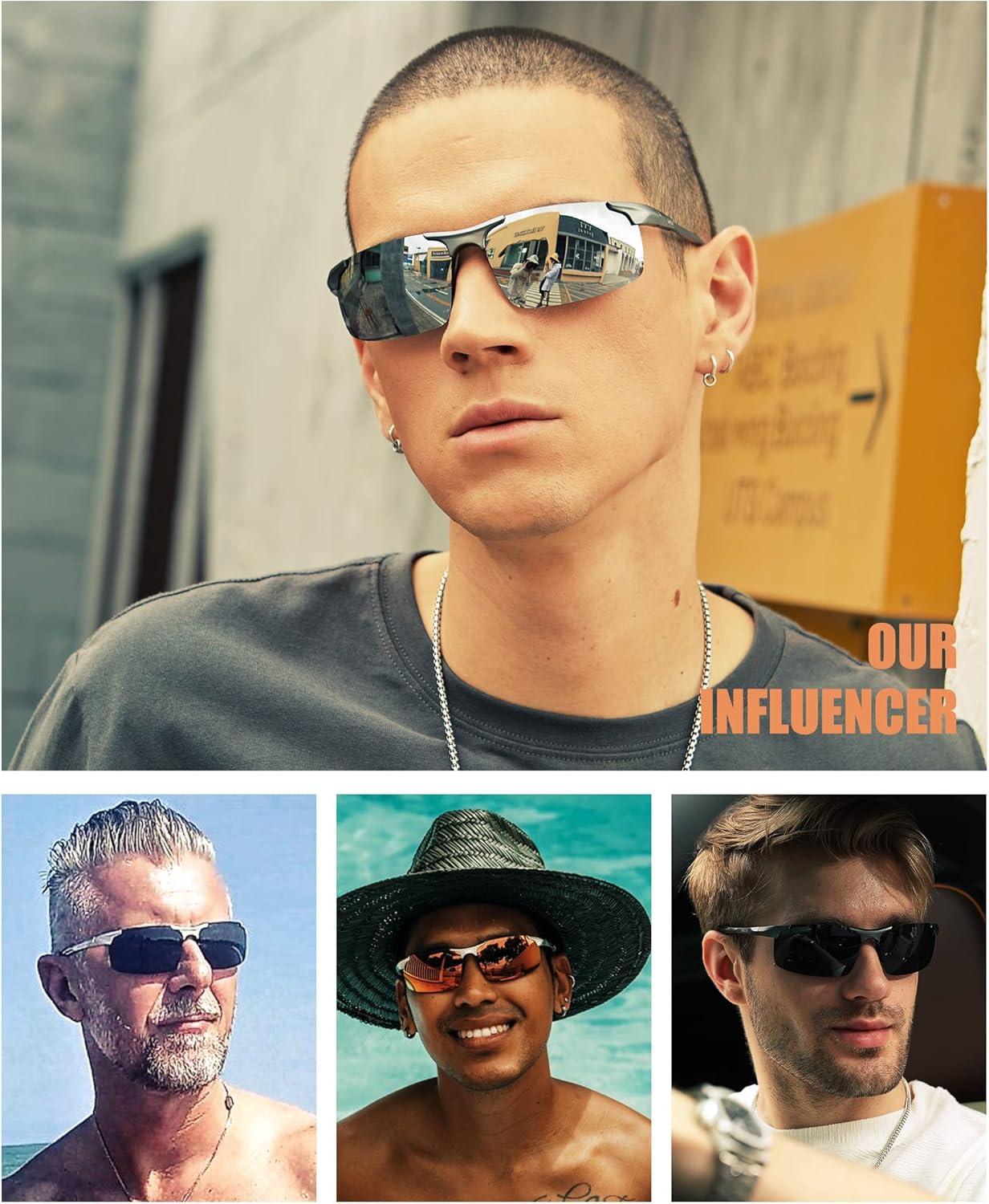 DUCO Mens Sports Polarized Sunglasses UV Protection Sunglasses for Men 8177s(Silver Frame Revo Mirror Lens)