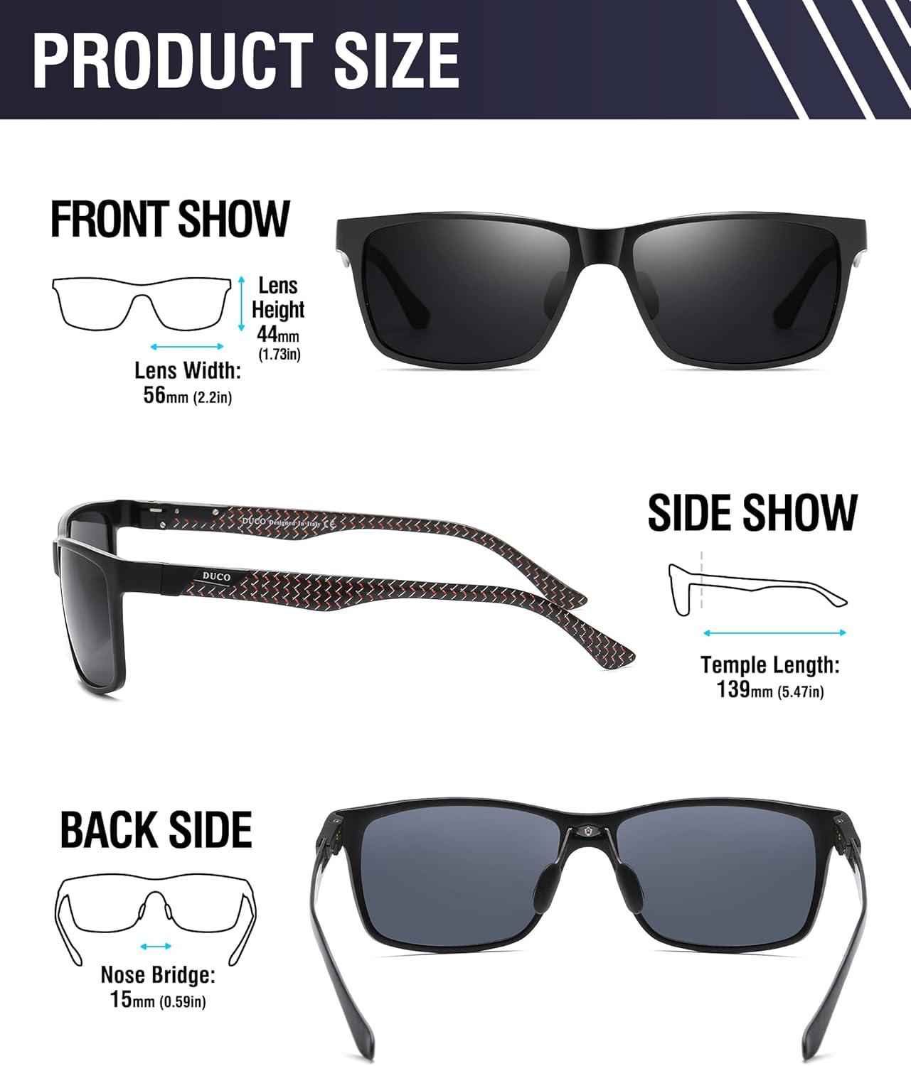 Be the first to review “DUCO Mens Sunglasses Polarized Rectangle Sunglass for Men Lightweight Carbon Fiber UV400 Protection 8206(Black Frame Black Red Temple Grey Lens)”