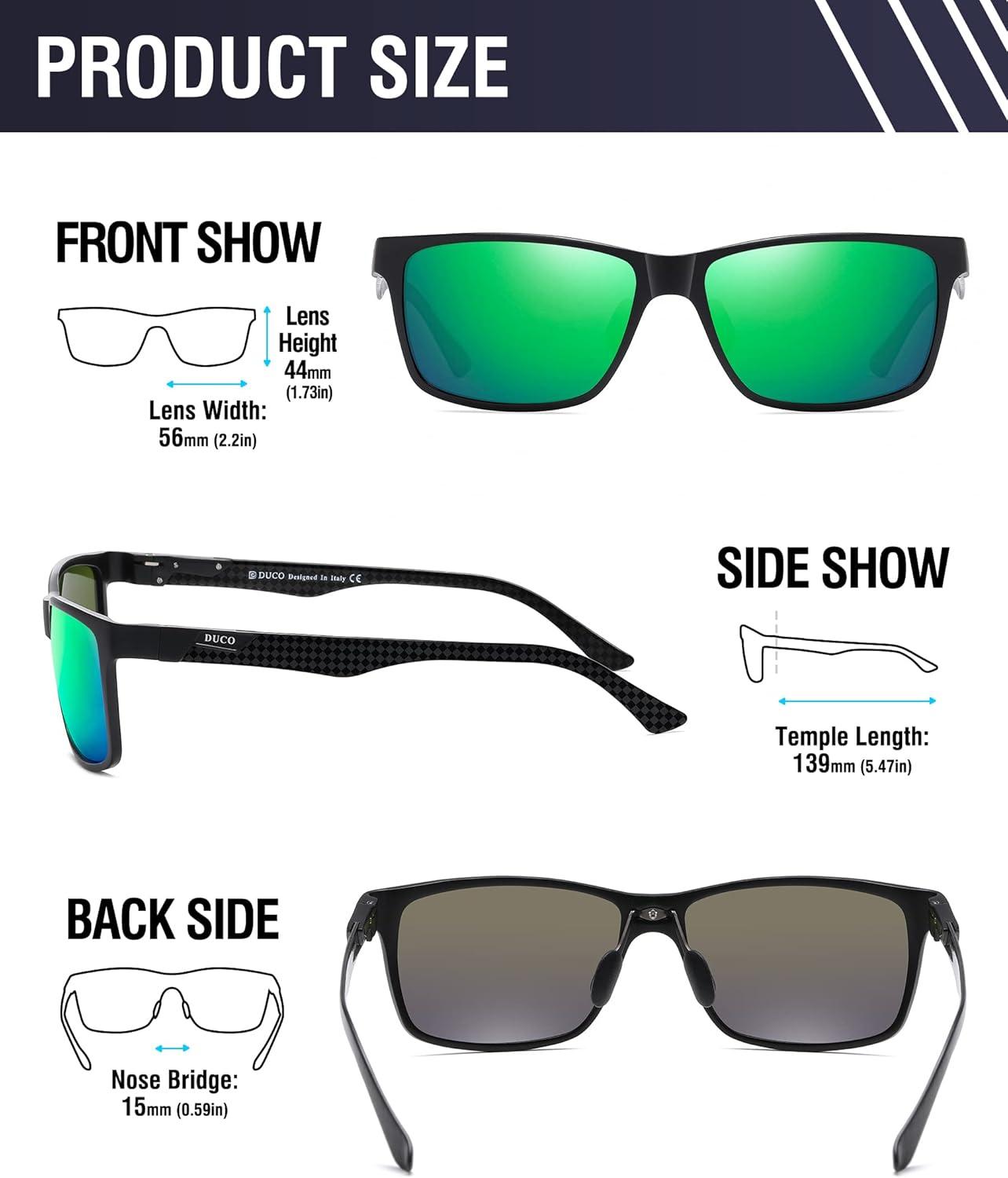 Be the first to review “DUCO Mens Sunglasses Polarized Rectangle Sunglass for Men Lightweight Carbon Fiber UV400 Protection 8206(Black Frame Black Temple Revo Green Lens)”