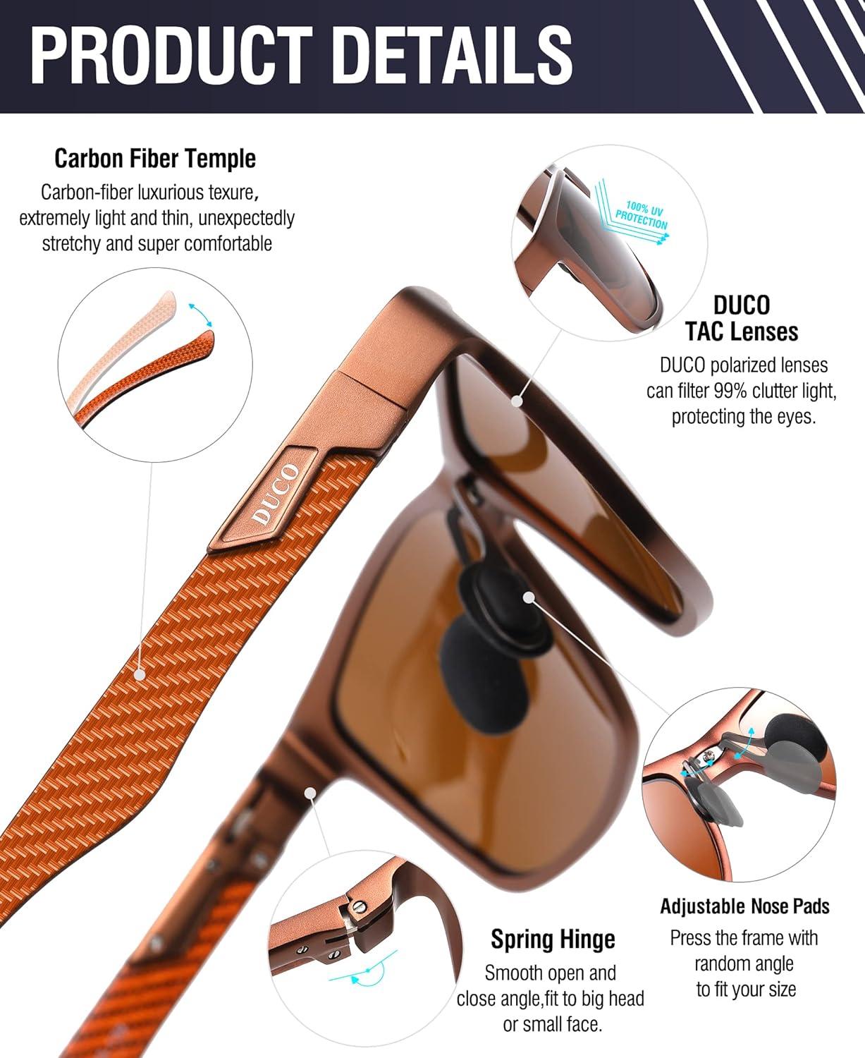 Be the first to review “DUCO Mens Sunglasses Polarized Rectangle Sunglass for Men Lightweight Carbon Fiber UV400 Protection 8206(Brown Frame Brown Lens)”