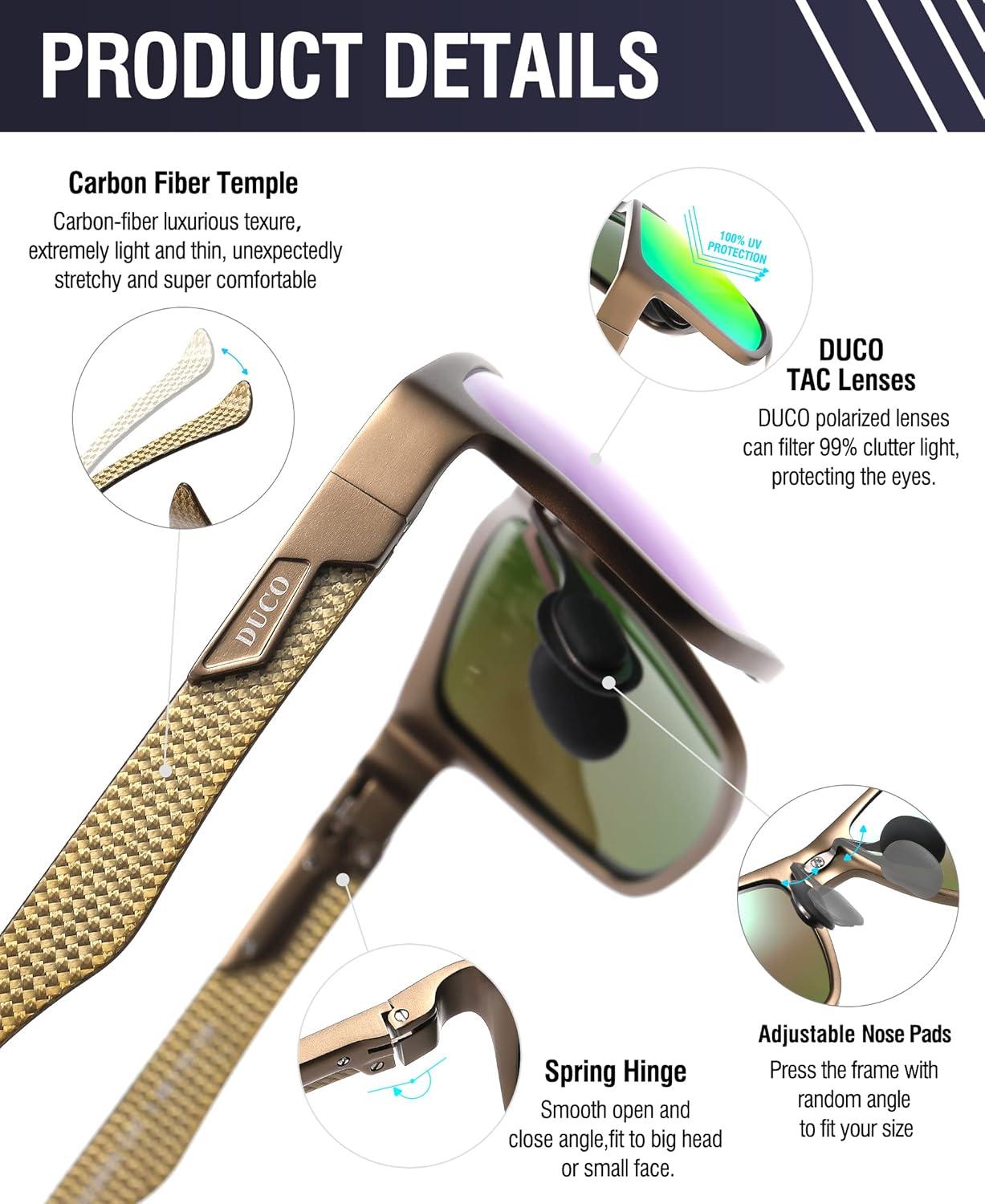 Get the DUCO Mens Sunglasses Polarized Rectangle Sunglass for Men Lightweight Carbon Fiber UV400 Protection 8206(Gold Frame Gold Temple Revo Green Lens) you want at a discounted price during our markdown sale event.