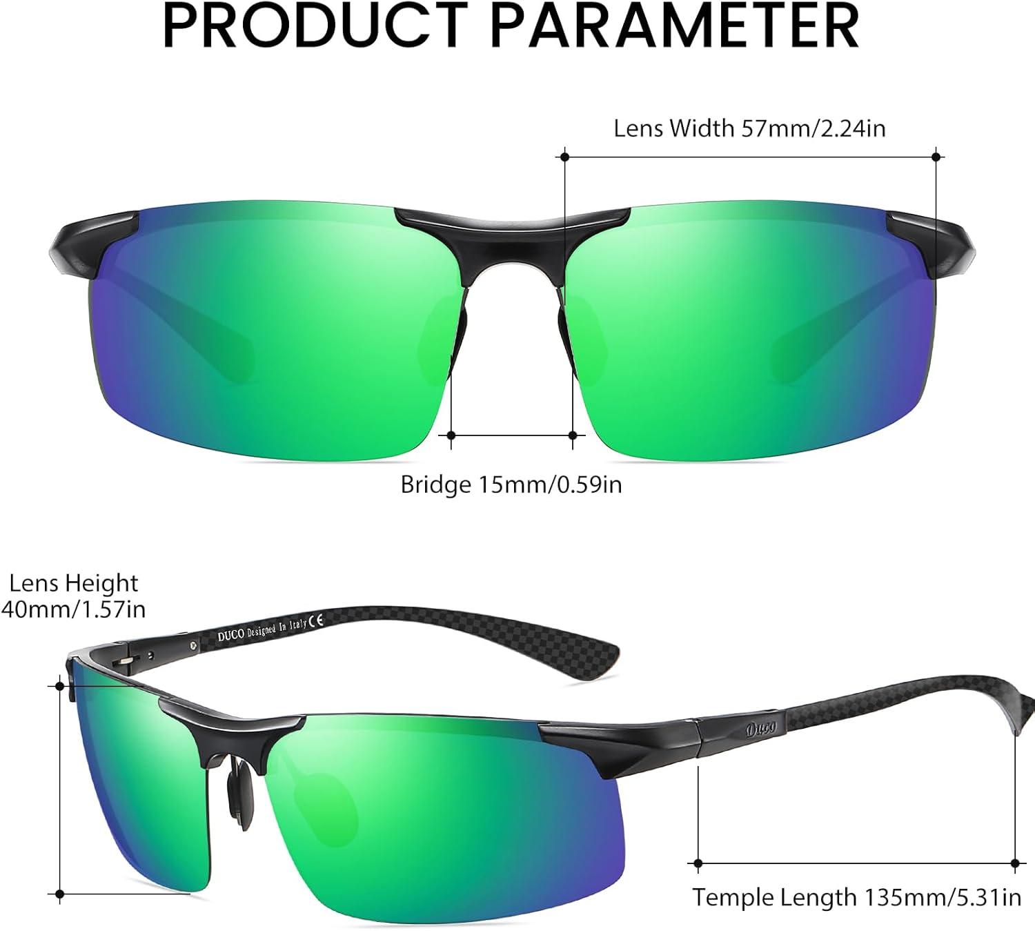 DUCO Mens Sunglasses Polarized Sports Fishing Running Driving Carbon Fiber Sunglasses for Men UV400 Protection DC8277(Black Frame Revo Green Lens)