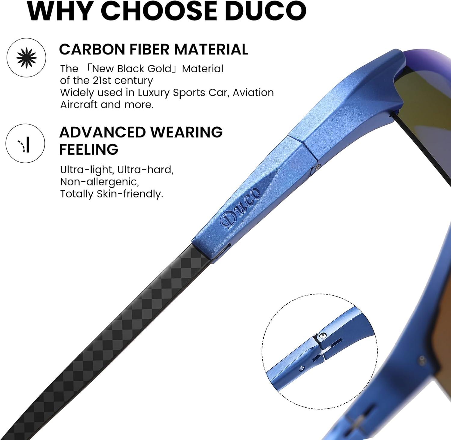 Be the first to review “DUCO Mens Sunglasses Polarized Sports Fishing Running Driving Carbon Fiber Sunglasses for Men UV400 Protection DC8277(Blue Frame Grey Temple Revo Blue Lens)”