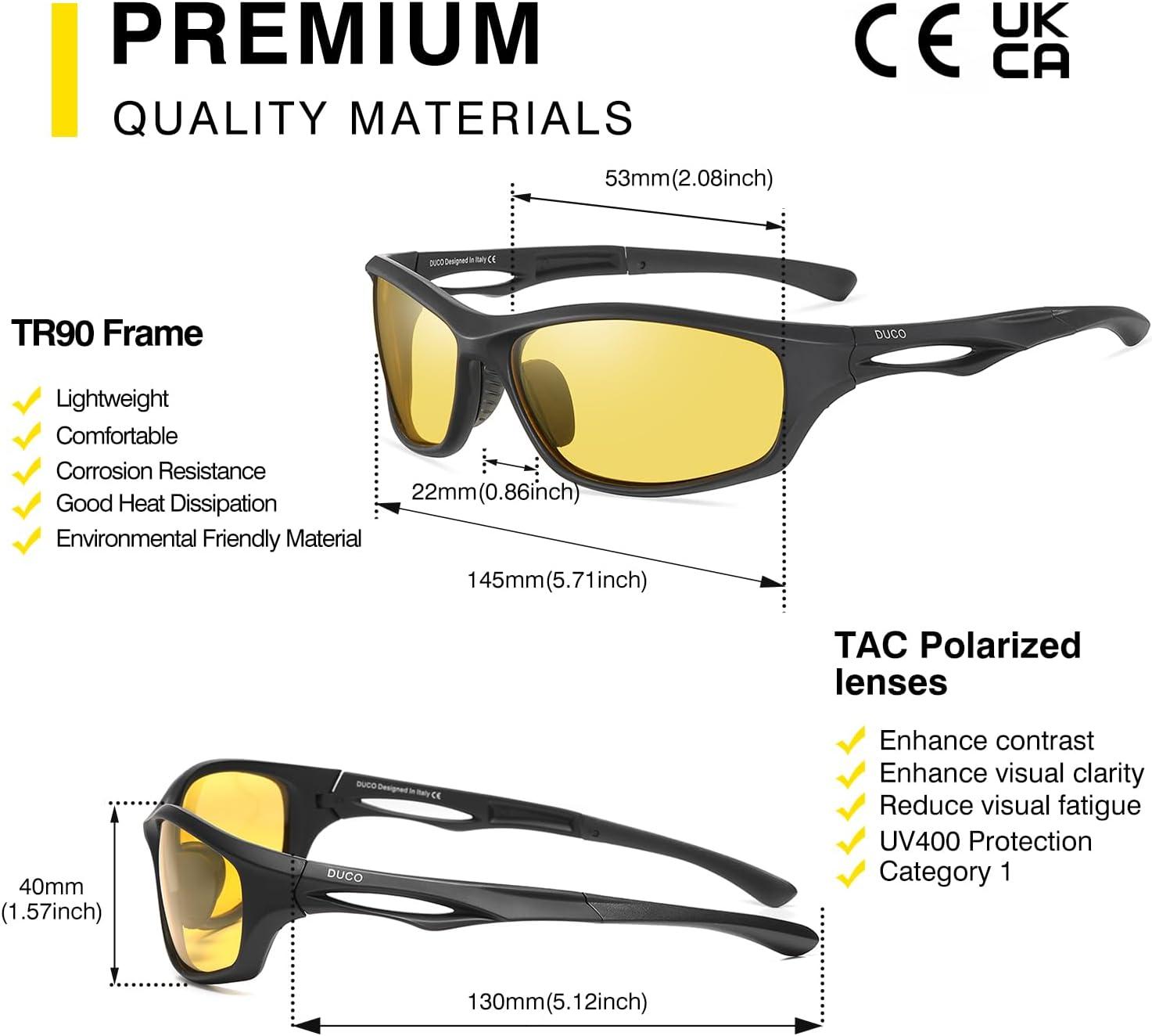 DUCO Night Vision Glasses for Men Sporty Night Goggles for Night Time Drive Anti Glare 6199Y(Black Frame Night Vision Lens)