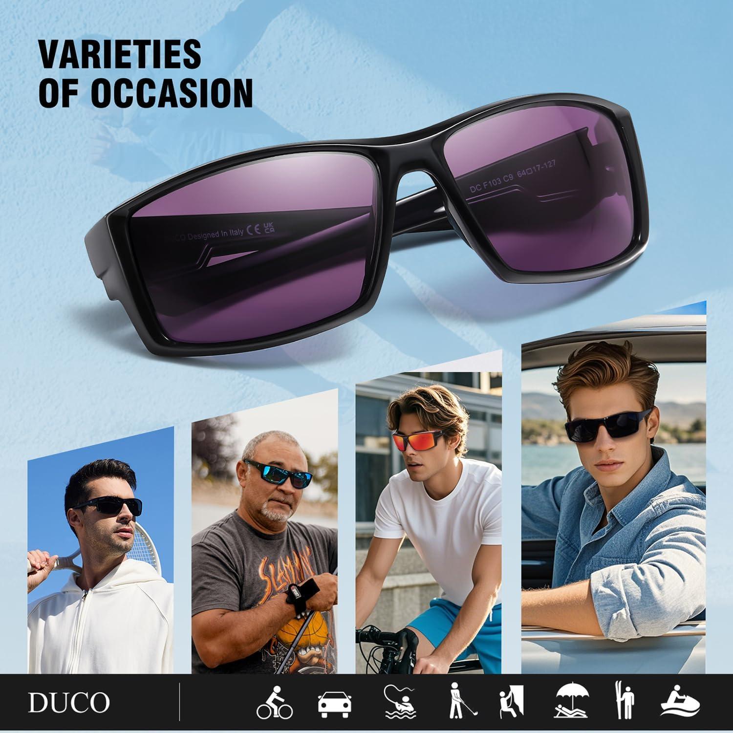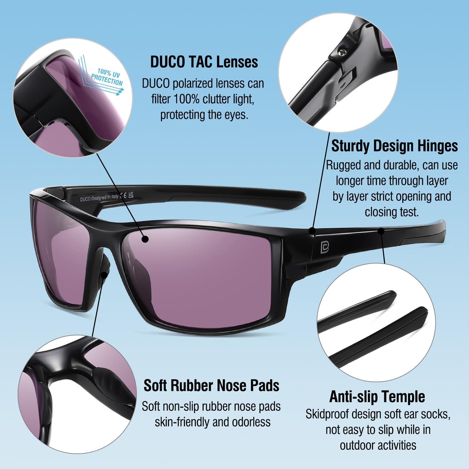DUCO Polarized Sports Sunglasses for Men Women UV400 Protection Lightweight Frame for Fishing Driving Running F103(Black Frame Purple Lens)