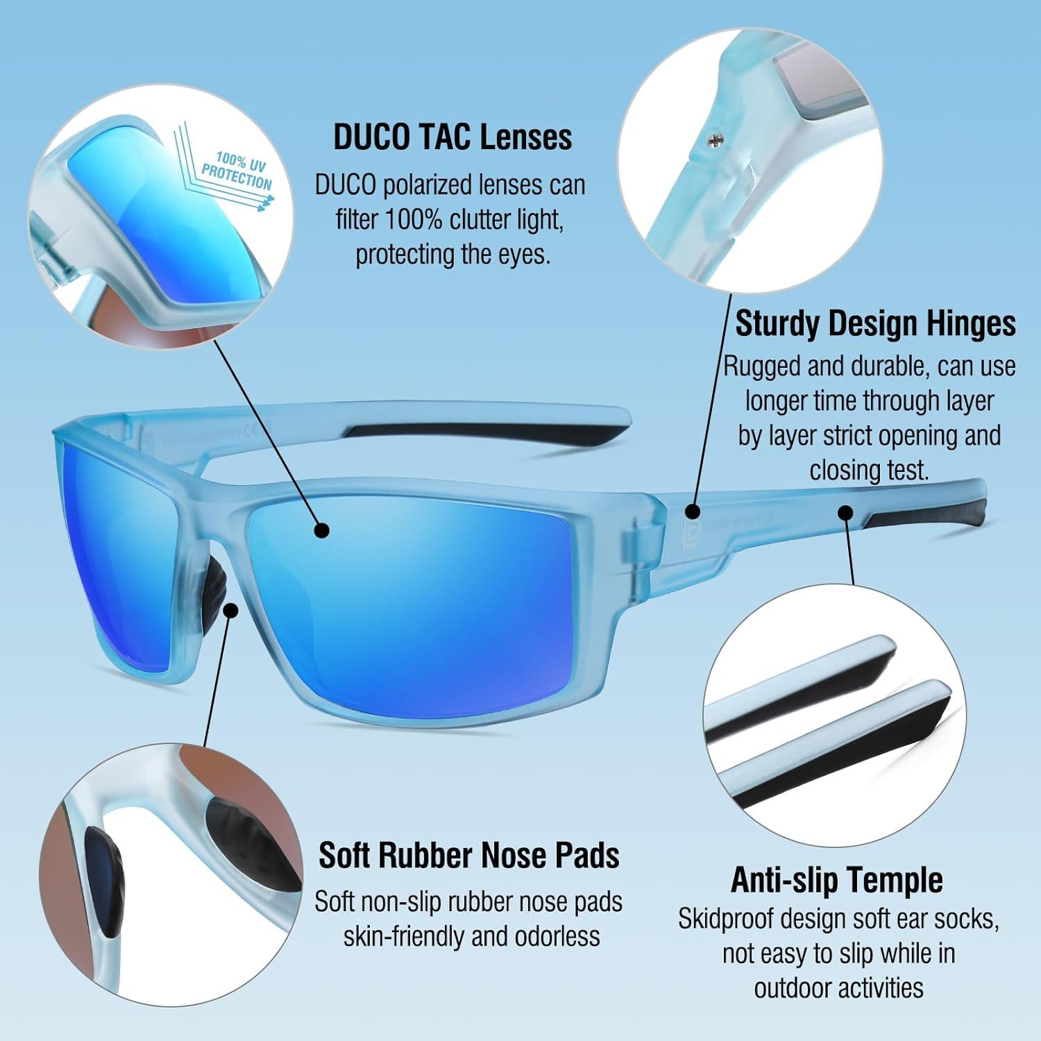 DUCO Polarized Sports Sunglasses for Men Women UV400 Protection Lightweight Frame for Fishing Driving Running F103(Transparent Blue Frame Revo Blue Lens)