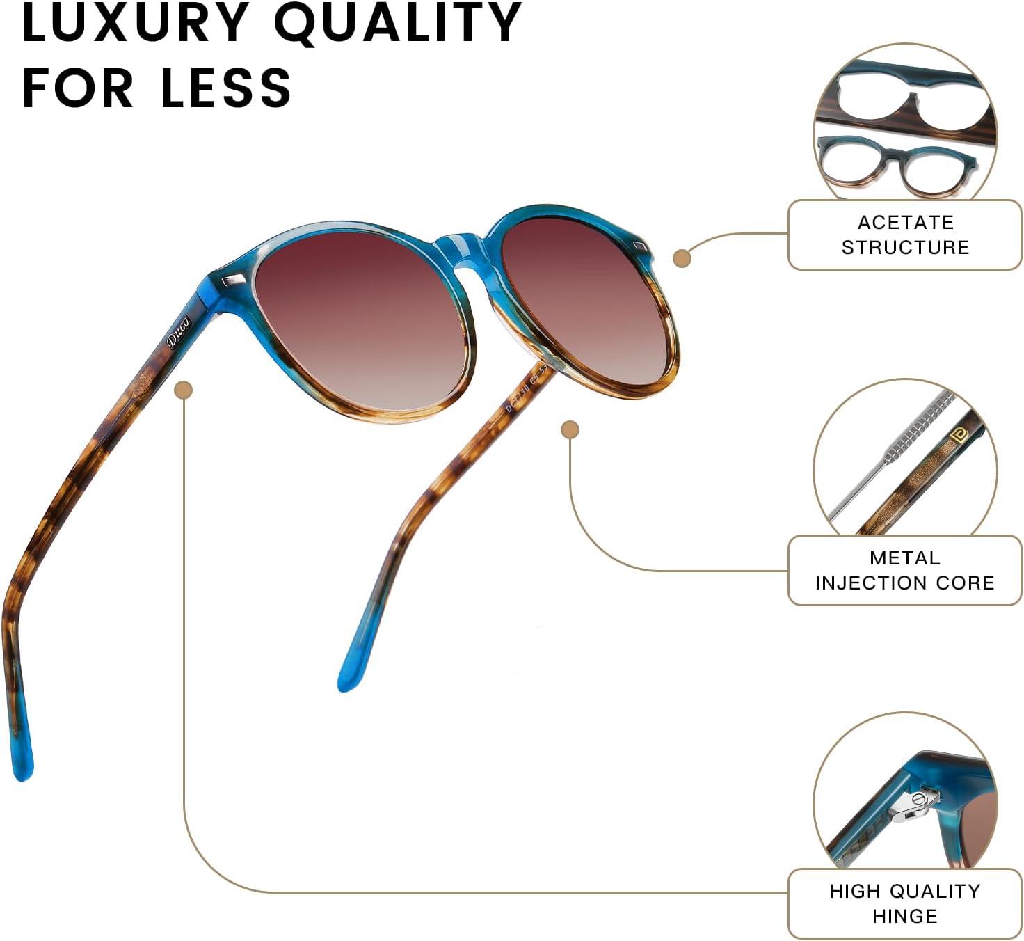 DUCO Polarized Sunglasses for Women Retro Round Women's Sunglasses Classic Vintage UV400 Shades DC1230(A-oceanic Tortoise Frame Brown Lens)