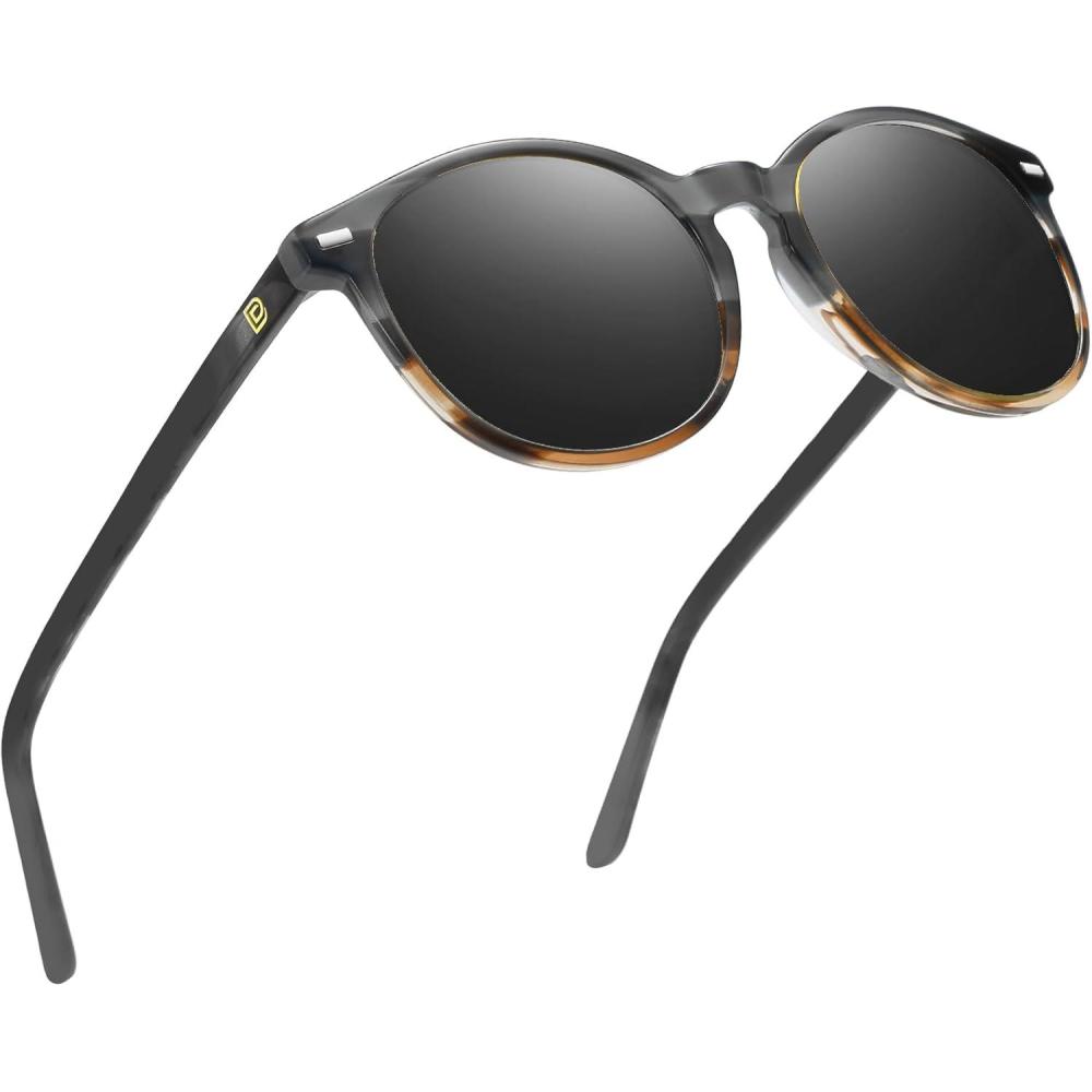 DUCO Polarized Sunglasses for Women Retro Round Women’s Sunglasses Classic Vintage UV400 Shades DC1230(Black Frame Grey Lens)