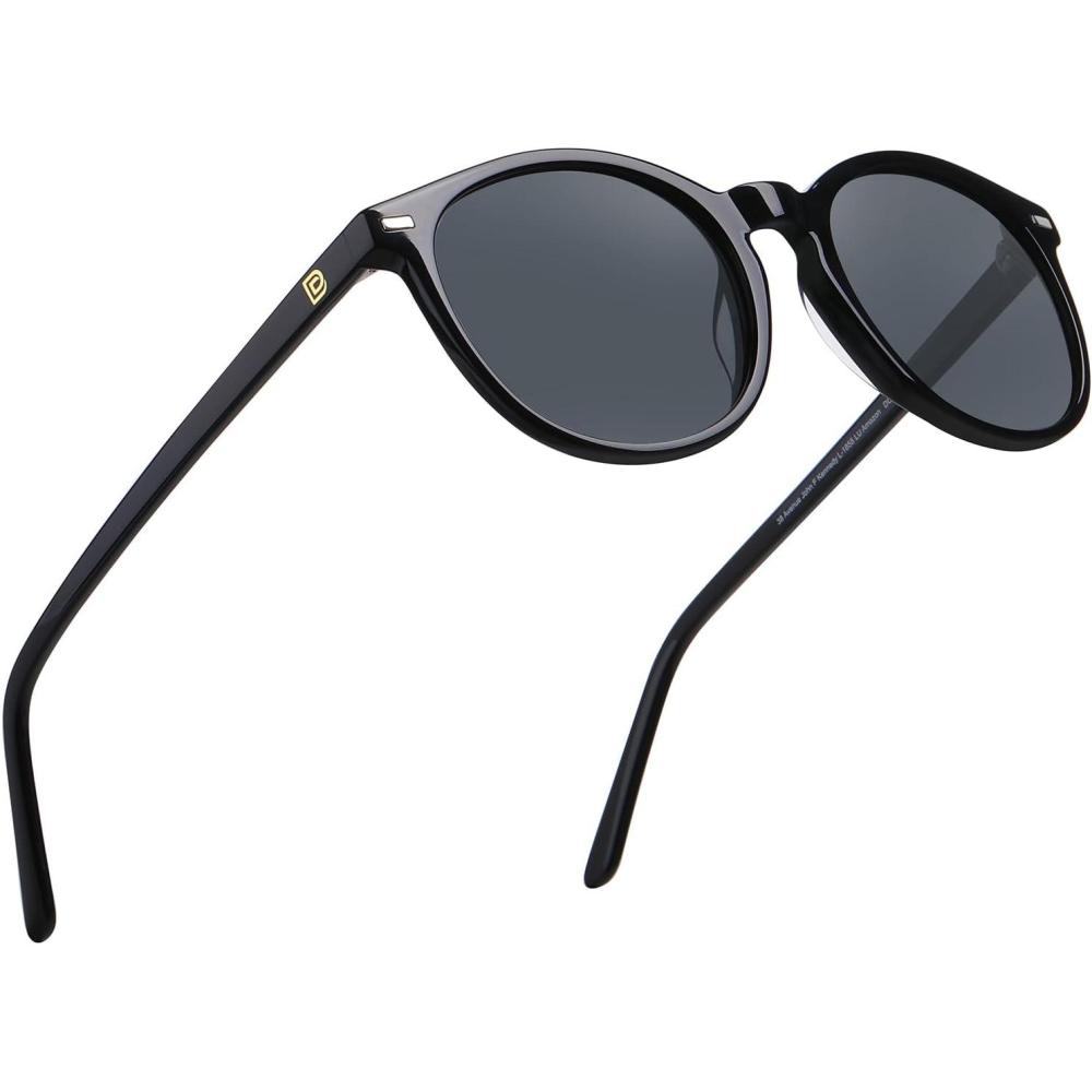 DUCO Polarized Sunglasses for Women Retro Round Women’s Sunglasses Classic Vintage UV400 Shades DC1230(Black Frame Grey Lens)