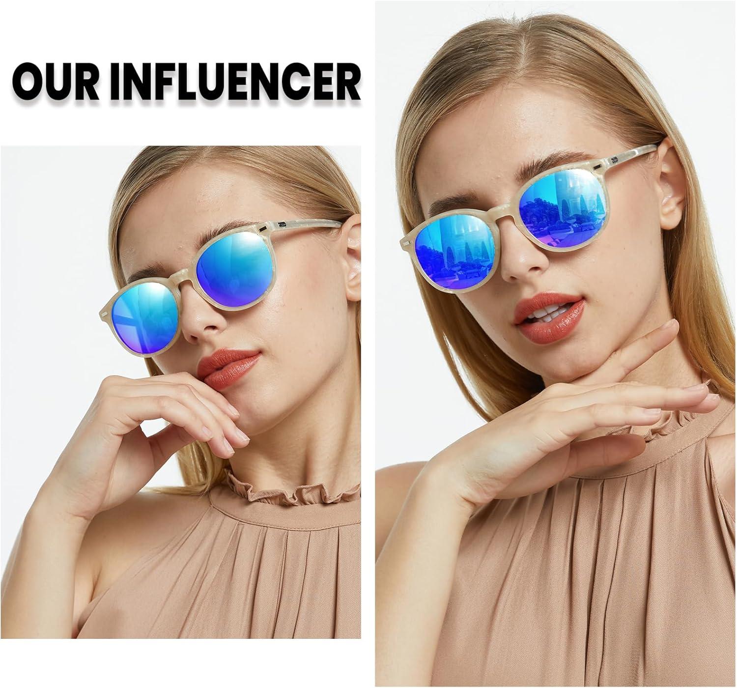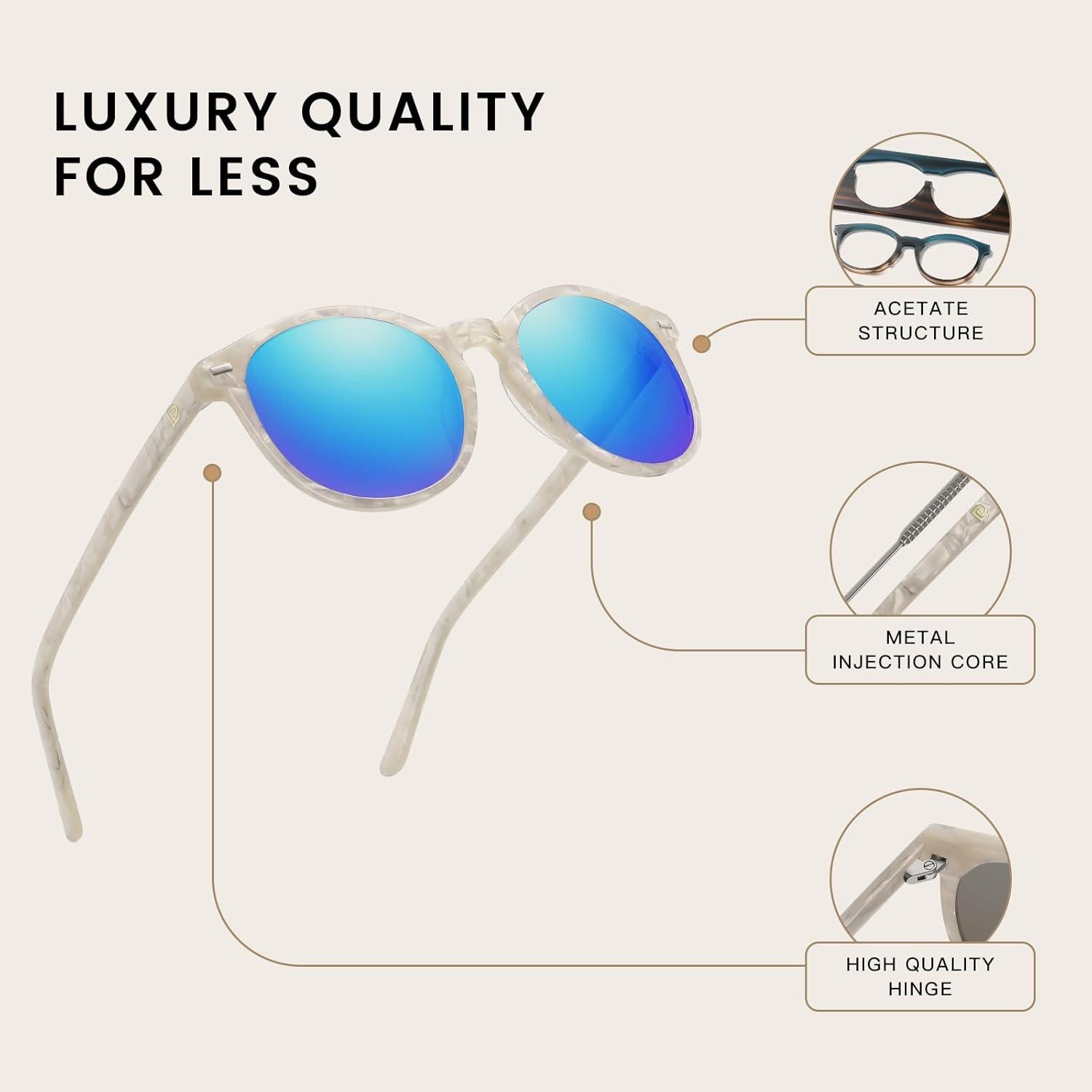 imageDUCO Polarized Sunglasses for Women Retro Round Womens Sunglasses Classic Vintage UV400 Shades DC1230Mermaid White Frame Revo Blue Lens