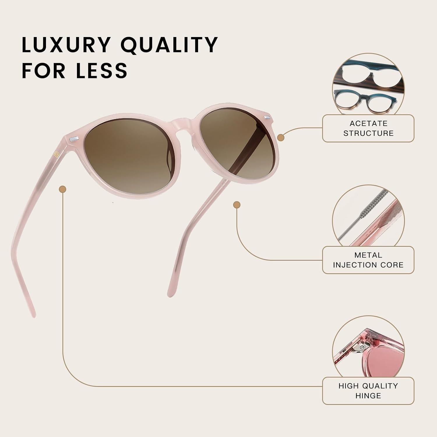 imageDUCO Polarized Sunglasses for Women Retro Round Womens Sunglasses Classic Vintage UV400 Shades DC1230Transparent Pink Frame Brown Lens