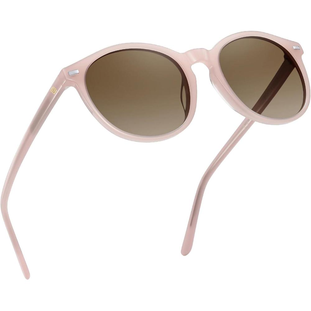 DUCO Polarized Sunglasses for Women Retro Round Women’s Sunglasses Classic Vintage UV400 Shades DC1230(Transparent Pink Frame Brown Lens)