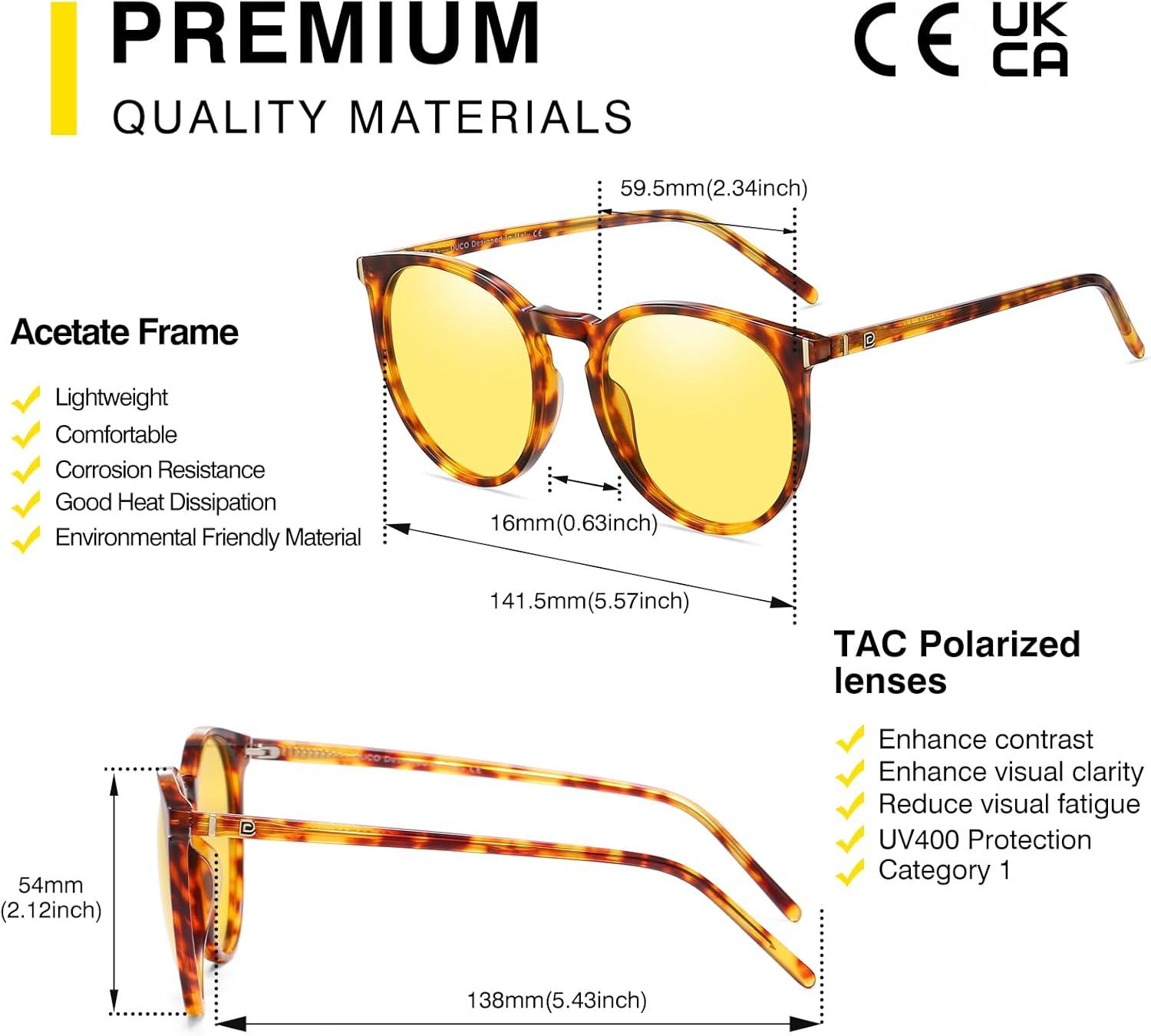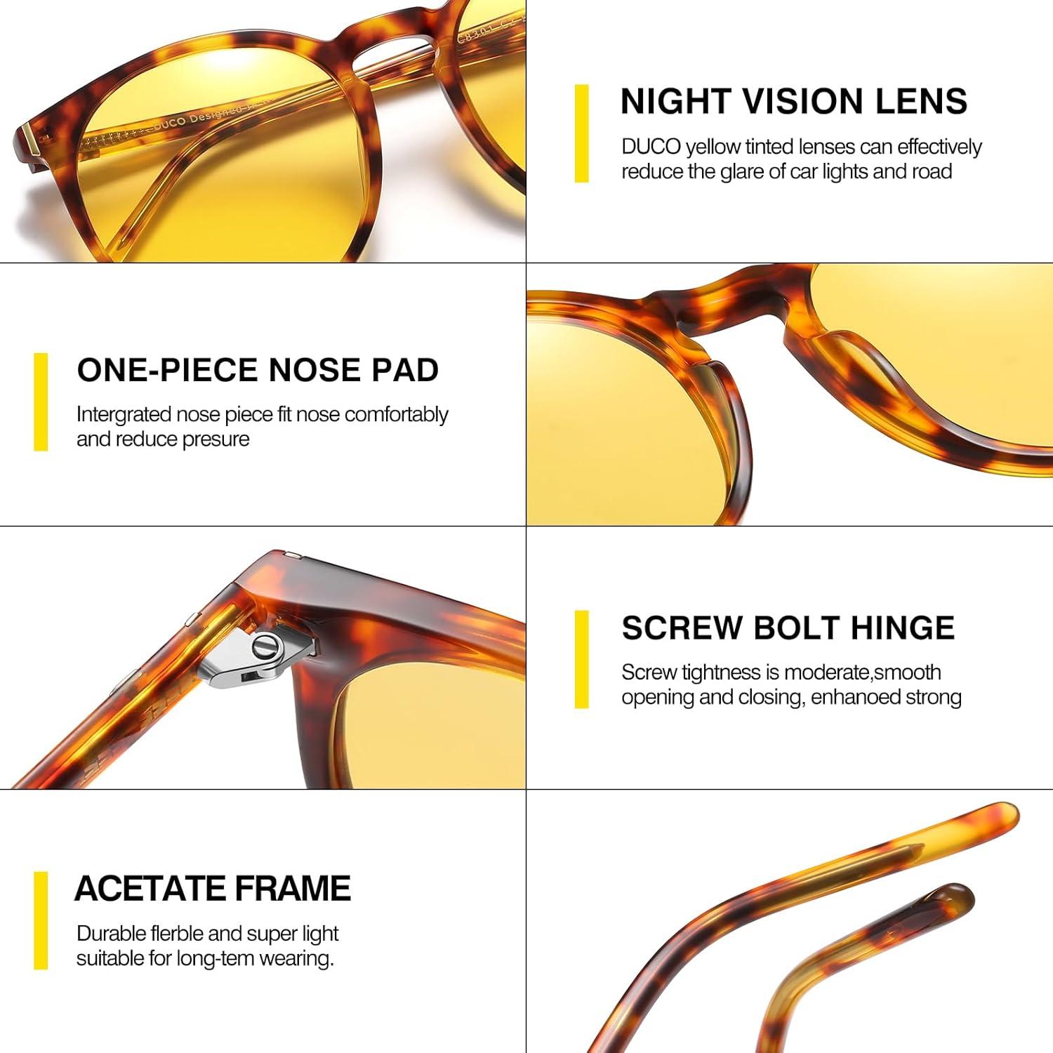 DUCO Retro Round Polarized Night Vision Glasses for Men Women HD Anti Glare Acetate Frame Night Driving Glasses for Men 8301Y(Tortoise Frame Night Vision Lens)