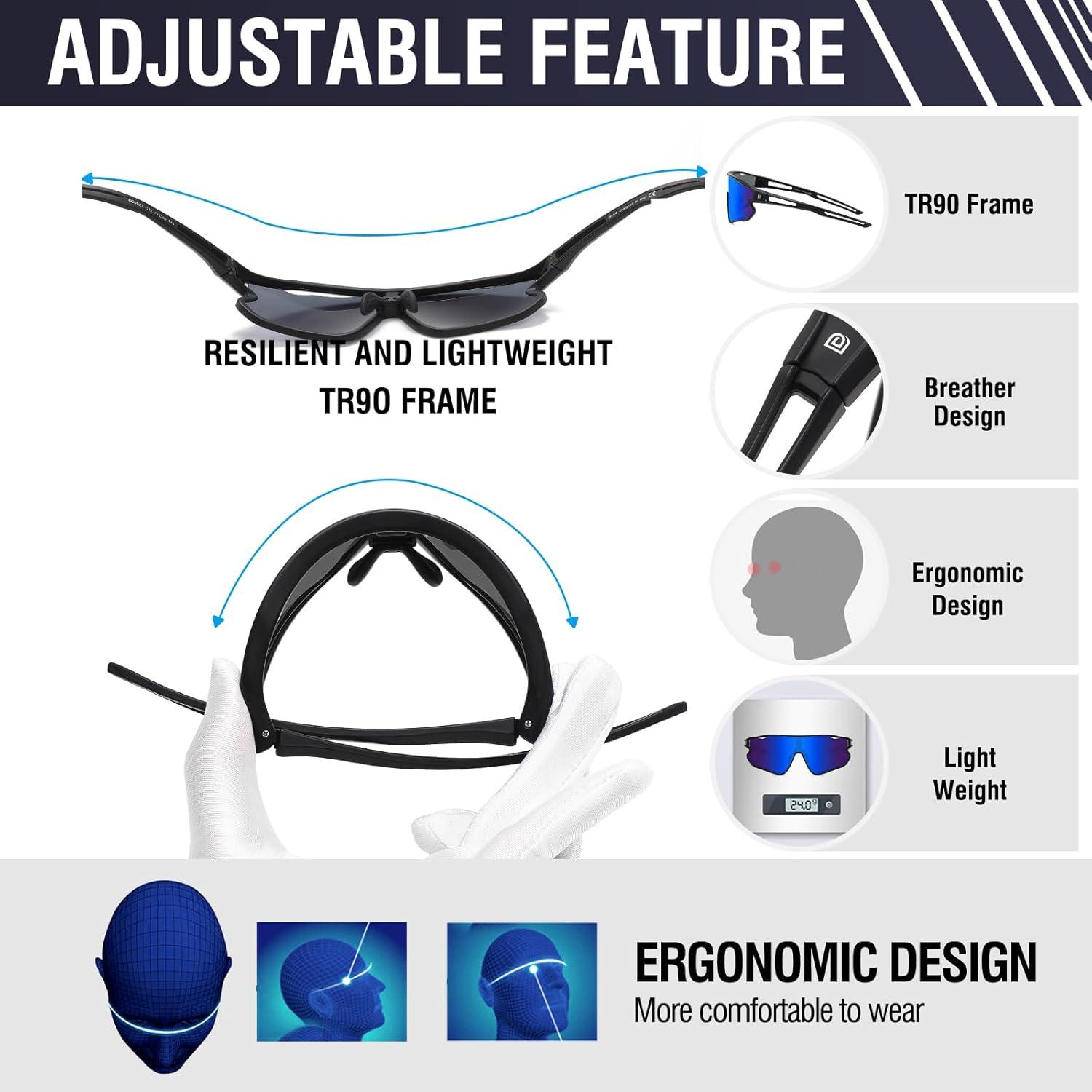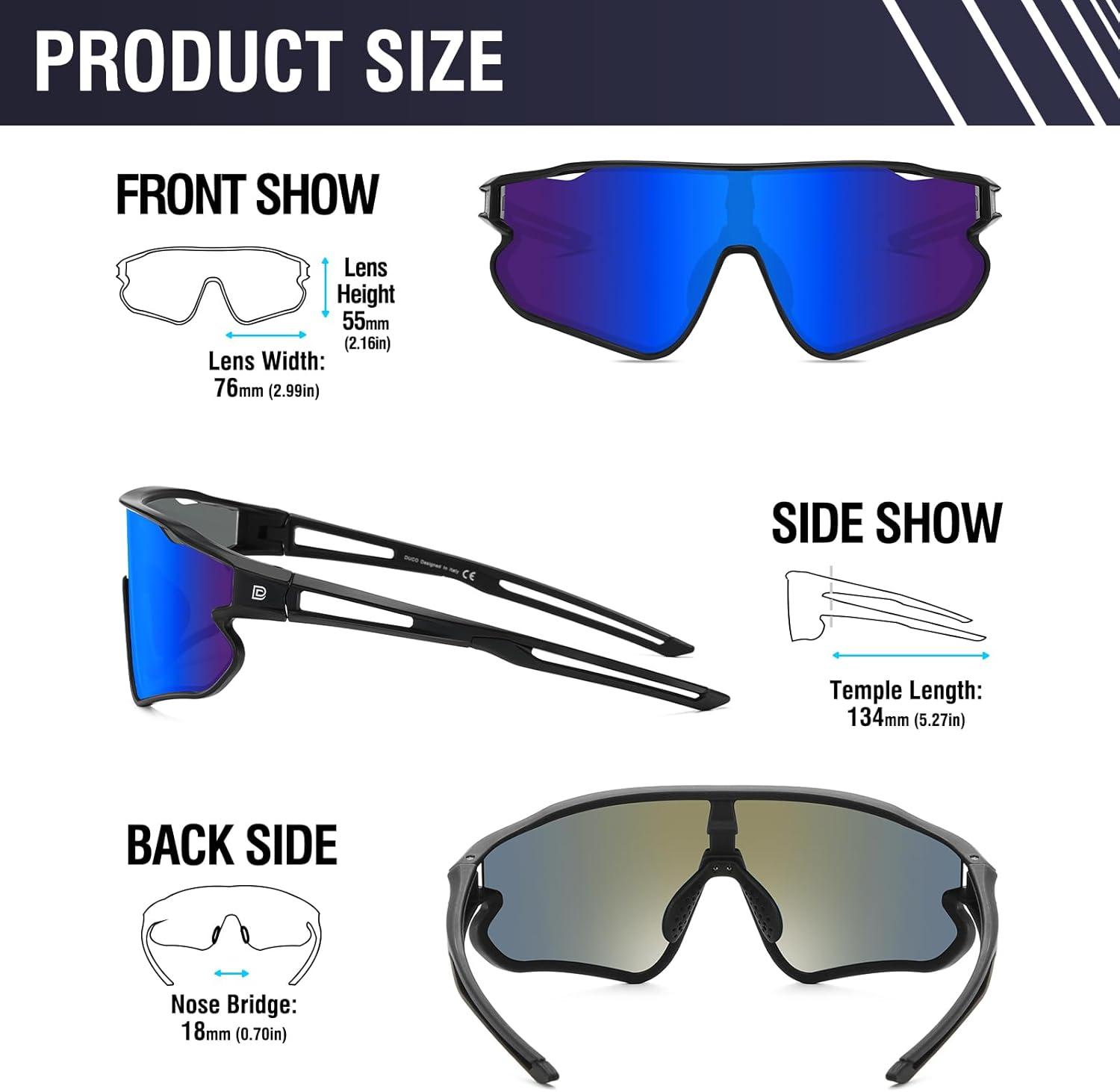 【YOUR BEST CHOICE FOR SPORTS】- Wider lenses provide a wider field of vision, offer maximum protection to the eyes against UV rays, dust, and wind. Curved design of the lenses has low air resistance, making them suitable for outdoor activities such as riding, running, baseball, climbing, racing, playing golf ,fishing, cycling, boating, sailing, water skiing, driving, hiking and traveling.