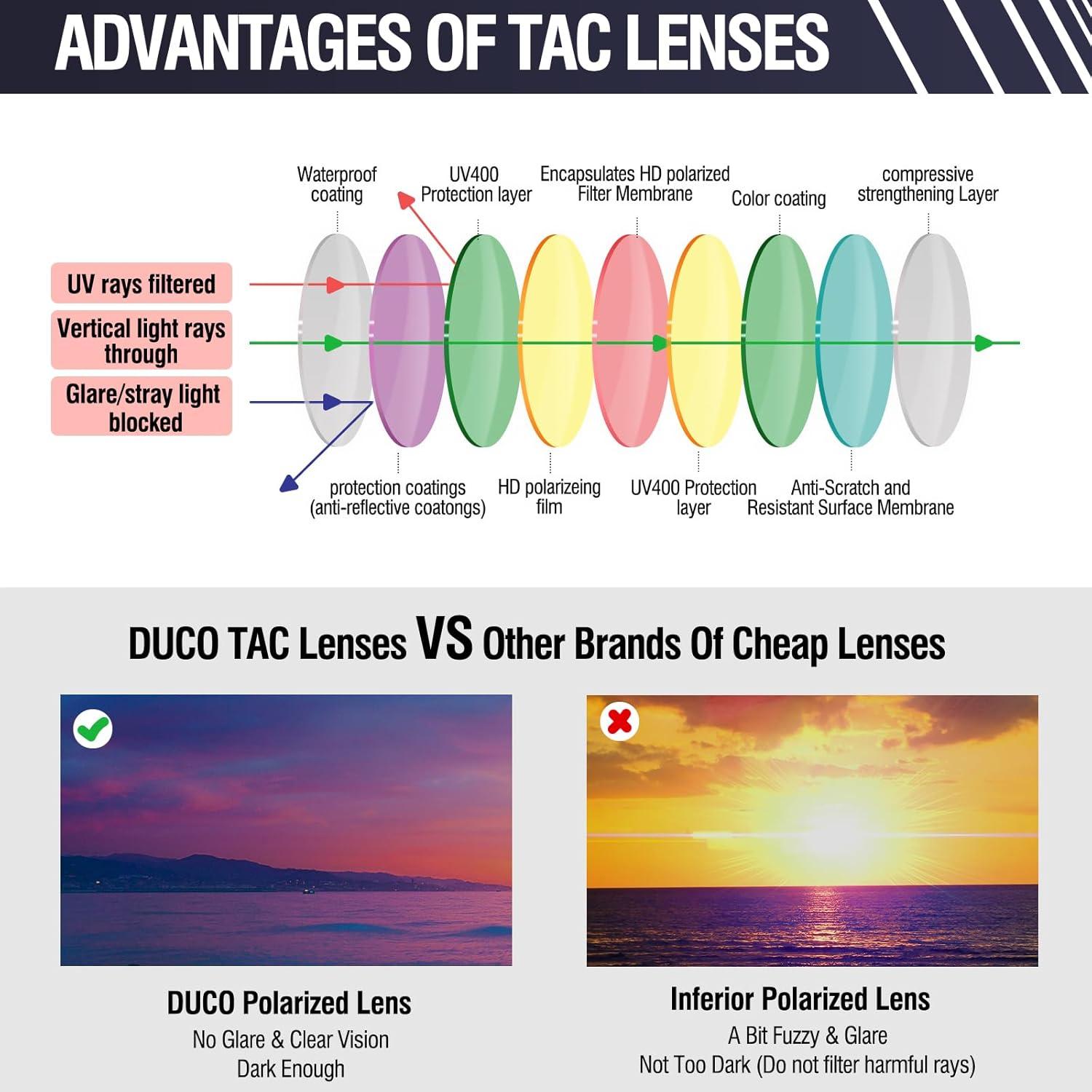 【HIGH CONTRAST LENS TECH】-With 20 years functional glasses manufacture experience, DUCO invented high contrast lens tech which makes the vision more clear and reduces eye fatigue, the lens are also scratch and impact resistant.