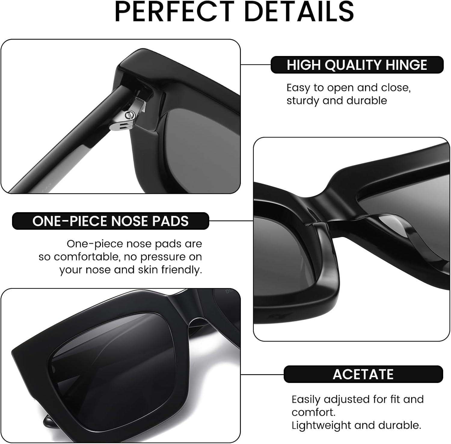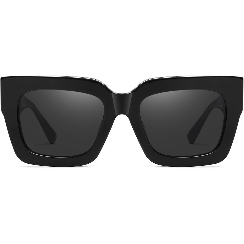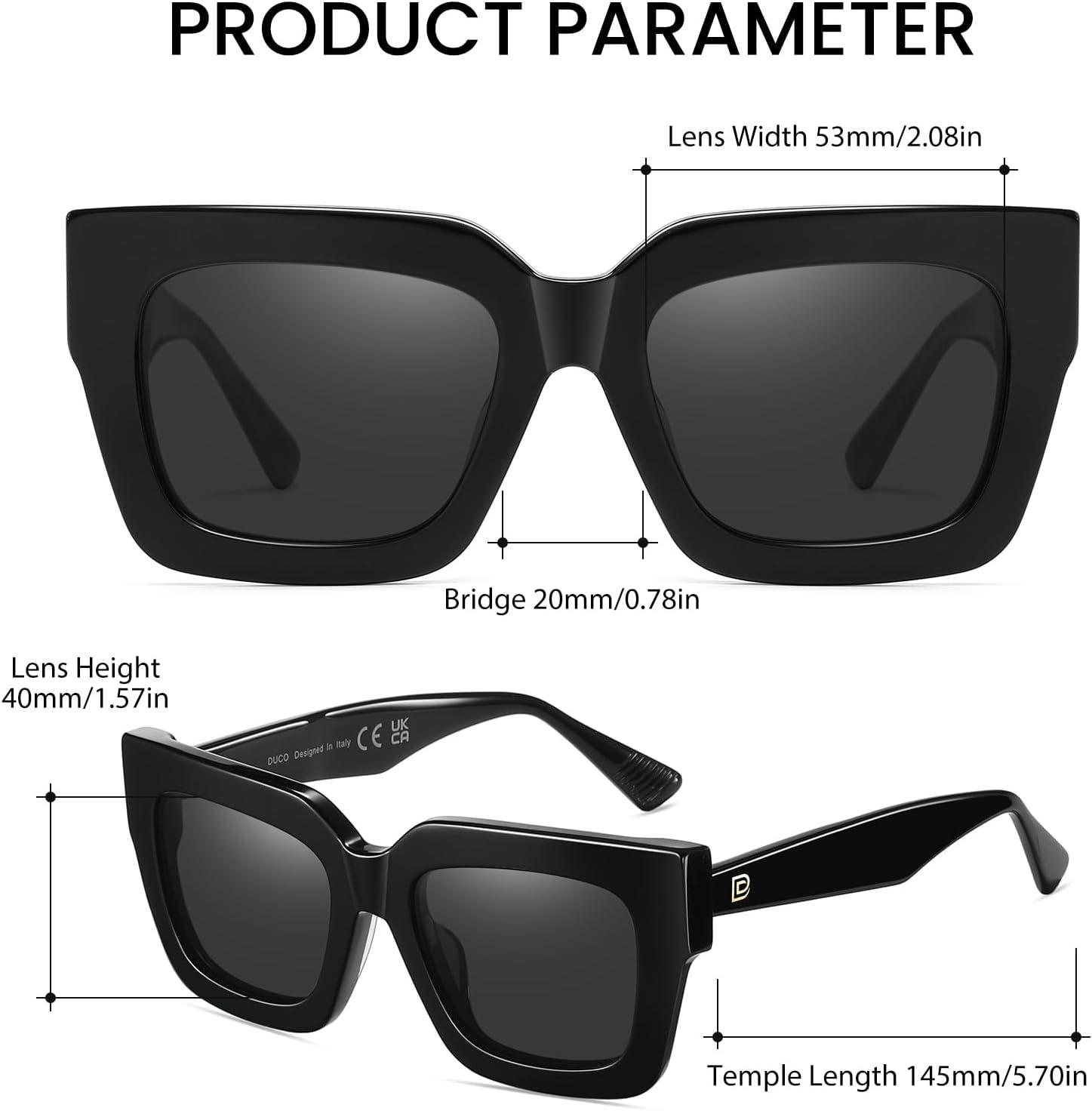 DUCO Trendy Square Sunglasses for Women Polarized Sunglasses UV400 Protection Sun Glasses Acetate Frame DC2380(Black Frame Grey Lens)